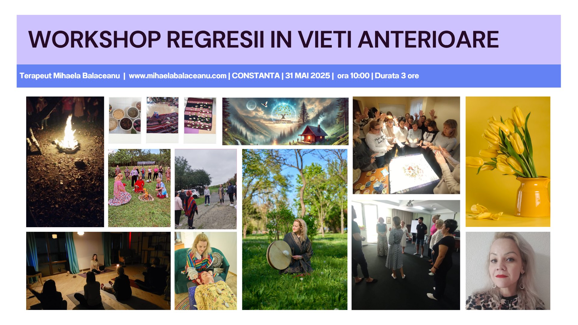 Te invit la un workshop transformator de 3 ore, unde vei experimenta o regresie ghidată într-o viață anterioară. Prin tehnici de relaxare profundă și meditație conștientă, vom accesa împreună informații din subconștient care pot aduce claritate, vindecare și sens în viața prezentă.